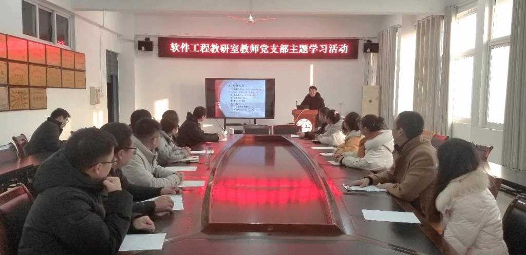 2020年11月11日下午15:00,信息工程学院软件工程教研室教师党支部在工B315会议室召开主题学习活动。软件工程教研室教师党支部书记潘正高教授为支部党员作了“教研类项目申报主题研讨与交流”的报告。