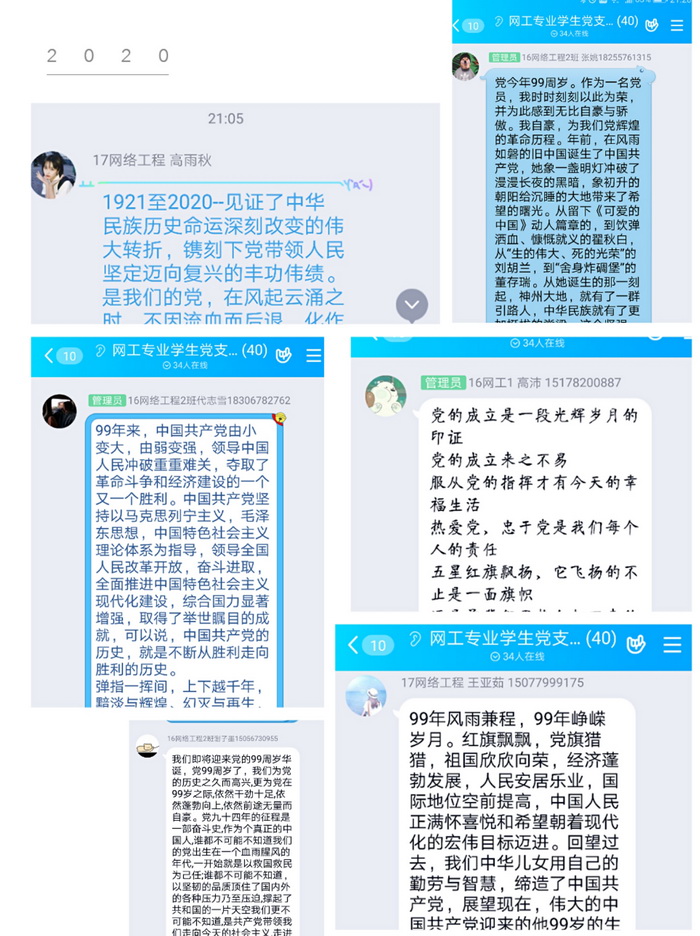 为了迎接中国共产党建党99周年,深入贯彻落实习近平新时代中国特色社会主义思想,激励党员坚定理想信念,增强政治意识。网络工程专业学生党支部于2020年6月28日开展庆祝建党99周年主题党日活动,活动由党支部书记杨娟主持,全体支部党员参与。