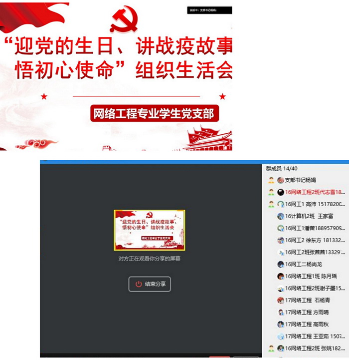根据校党委组织部《关于在常态化疫情防控中组织开展基层党建“四个一”行动实施方案》文件要求,网络工程专业学生党支部于6月29日召开了一次以“迎党的生日、讲战疫故事、悟初心使命”为主题的组织生活会。此次会议由党支部书记杨娟主持,支部全体党员共同参加会议。