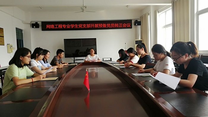 9月8日下午,信息工程学院网络工程专业学生党支部在工科楼B楼315会议室召开了“预备党员转正”大会,会议由支部书记杨娟主持,支部全体成员参加。