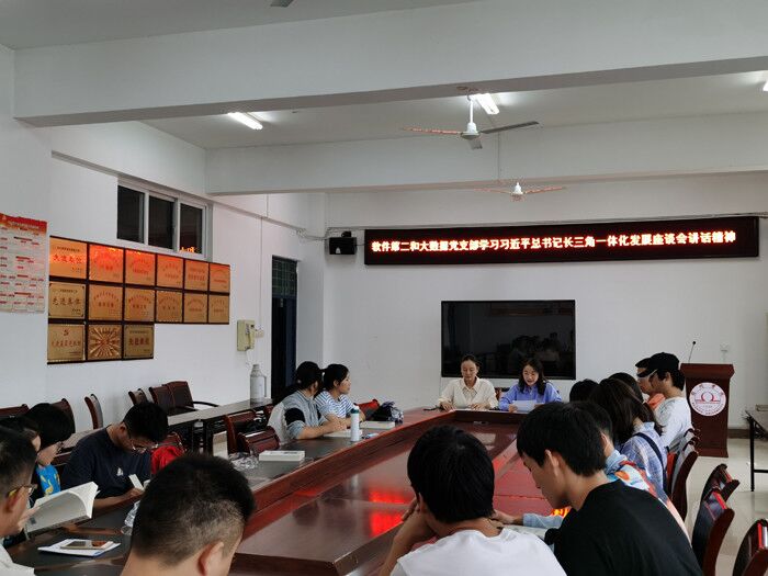为深入学习习近平长三角一体化发展座谈会讲话的宣传贯彻工作,信息工程学院软工第二和大数据学生党支部于9月28日在工B315开展了 “学习习近平长三角一体化发展座谈会讲话”主题会议,组织党支部成员学习座谈会讲话的丰富内涵。本次会议由软工第二党支部书记徐小雪老师和大数据应用学生党支部书记李小燕老师共同主持,学生党支部全体成员参加。