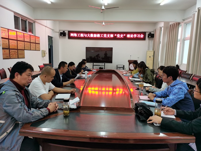 为贯彻落实中共中央《关于巩固深化“不忘初心、牢记使命”主题教育成果的意见》,进一步推进主题教育常态化、制度化,提高党员责任感和使命感,信息工程学院网工与大数据教研室教工党支部于2020年10月13日下午在工B315开展“不忘历史、学习党史、以史为鉴、共筑中国梦”的党史理论学习会。会议由党支部书记张万礼主持,信息工程学院党总支书记路红梅作为普通党员参加本次会议。