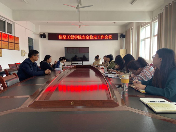 根据宿州学院安全会议的工作要求,为进一步推动信息工程学院安全教育工作的深入开展,增强师生安全意识,2020年10月20日上午,信息工程学院党总支在工B315会议室召开安全稳定工作会议。党总支委员、学院各支部书记和全体辅导员、班主任参加了会议,会议由党总支书记路红梅主持。
