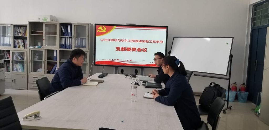 2020年10月19日中午,信息工程学院公共计算机与软件工程教研室教工党支部于工B308召开了支部委员会。会议由党支部书记潘正高主持,公共计算机与软件工程教研室教工党支部支委参加会议。