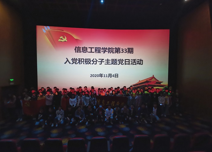 为弘扬伟大的抗战精神,增强全体入党积极分子对新中国成立及党领导人民艰苦奋斗历程的认识和感悟,进一步激发入党积极分子的使命感和责任感,11月4日下午,信息工程学院党总支组织第33期入党积极分子观看了抗战主题电影《金刚川》。各学生党支部书记以及第33期全体入党积极分子参加了此次主题党日活动。
