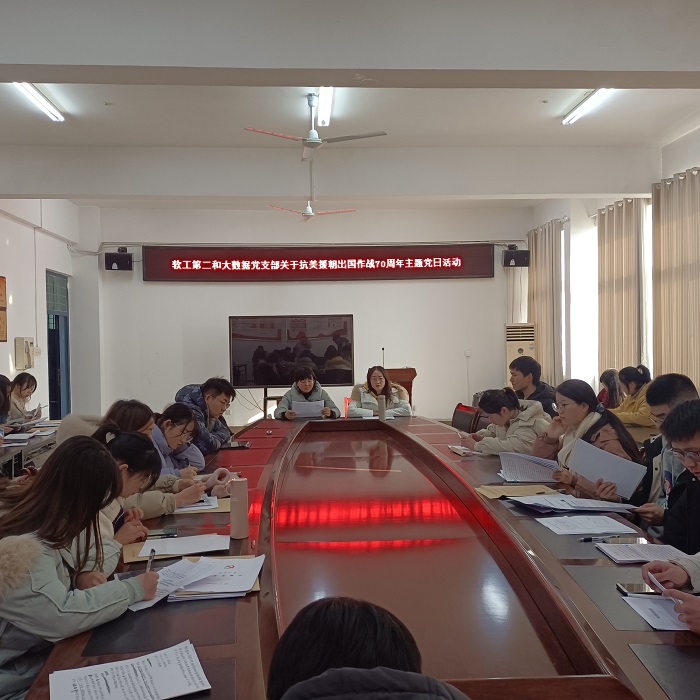 今年是中国人民志愿军抗美援朝出国作战70周年。70年前的这场战争被称为“新中国的立国之战”,它维护了亚洲和世界和平,巩固了新生的人民政权,使中国的国际威望空前提高,极大地增强了民族自信心和自豪感。为此,软工第二和大数据应用专业学生党支部于2020年12月17日下午3:00在工B315举办学习抗美援朝作战70周年主题党日活动。
