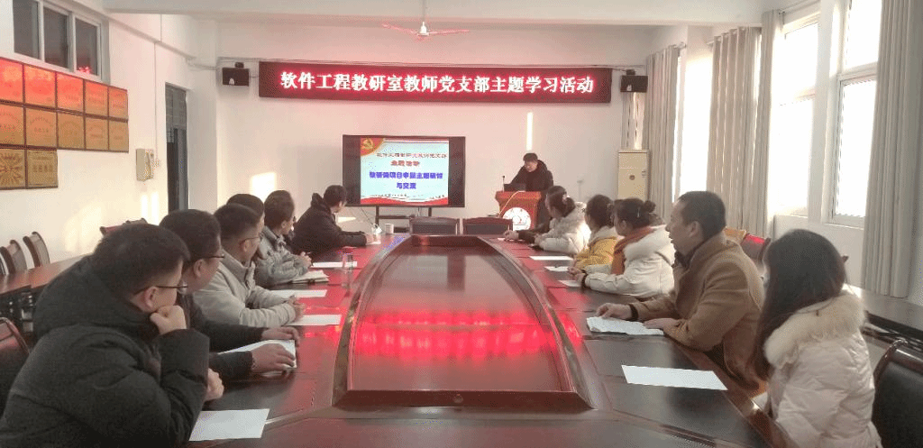 2020年11月11日下午15:00,信息工程学院软件工程教研室教师党支部在工B315会议室召开主题学习活动。软件工程教研室教师党支部书记潘正高教授为支部党员作了“教研类项目申报主题研讨与交流”的报告。
