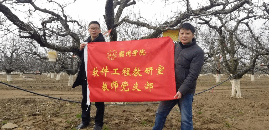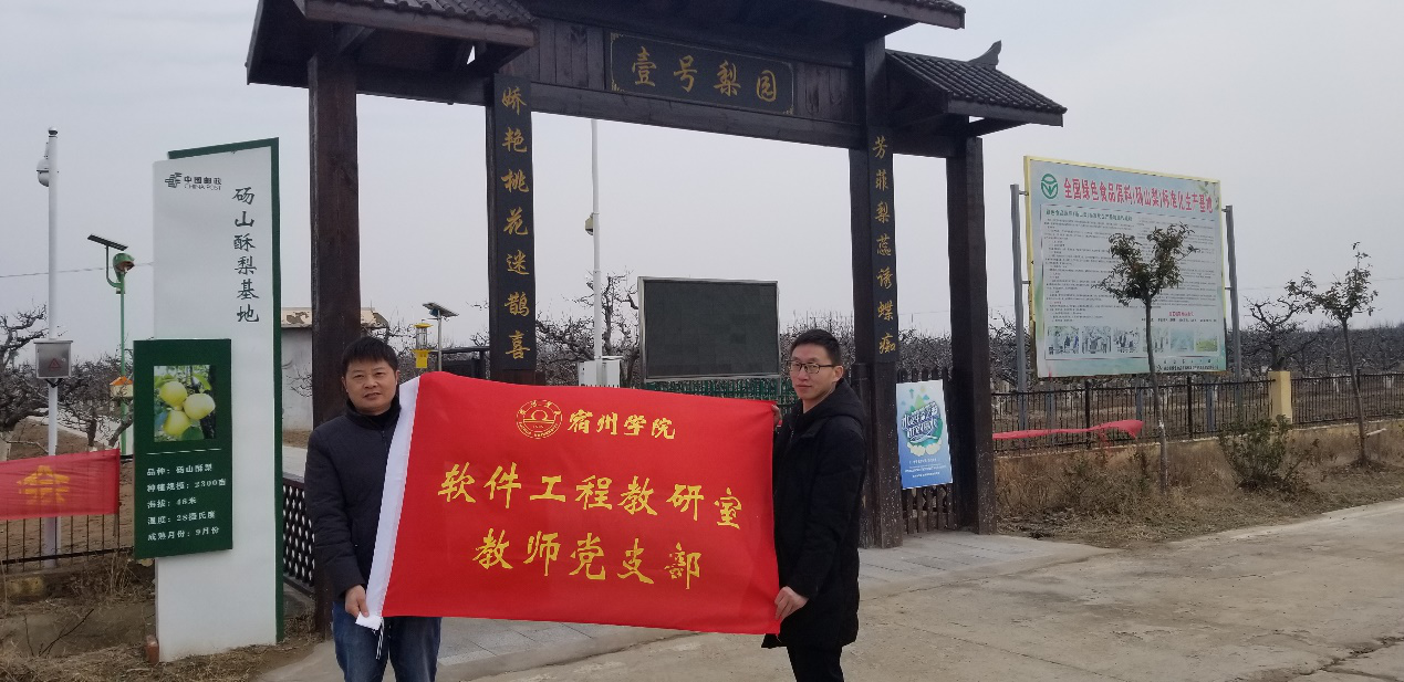 2021年2月26日,软件工程教研室教师党支部潘正高、姜飞两位老师与安徽大学电子信息工程学院信号二党支部前往砀山县园艺场壹号农场联合开展安徽省重点研究与开发项目实施活动。