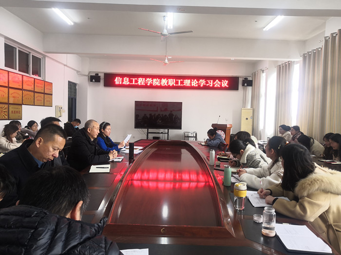 为深入学习宣传落实中共中央、国务院印发的《深化新时代教育评价改革总体方案》,贯彻落实习近平总书记关于教育的重要论述和全国教育大会精神,2021年3月17日信息工程学院在工B315会议室召开全体教职工理论学习会议。会议由副院长吴孝银主持,全体教职工参加了会议。
