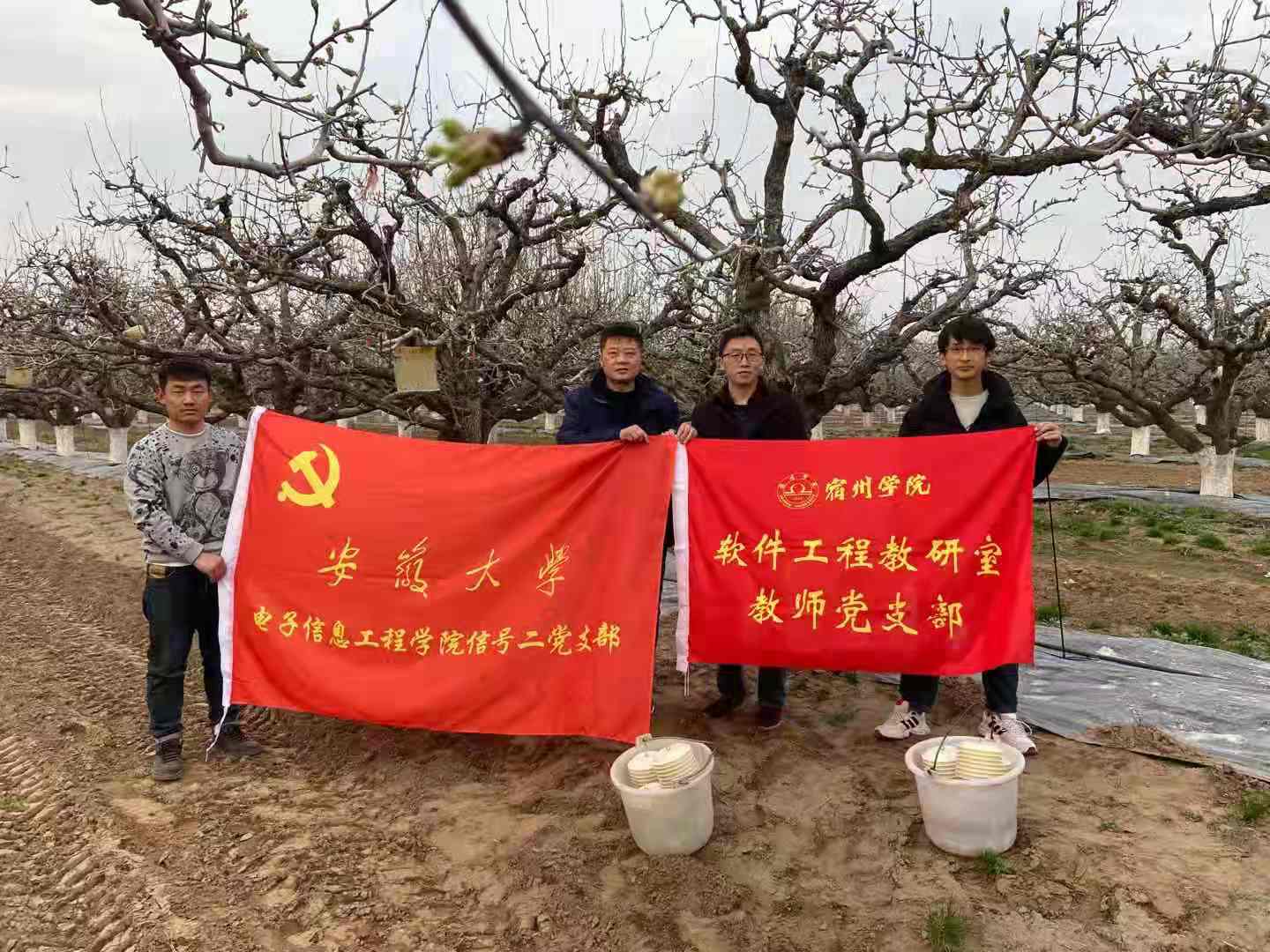 2021年3月17日,软件工程教研室教师党支部潘正高、姜飞两位老师与软件工程专业学生党支部、安徽大学电子信息工程学院信号二党支部前往砀山县园艺场壹号农场联合开展安徽省重点研究与开发项目实施活动。
