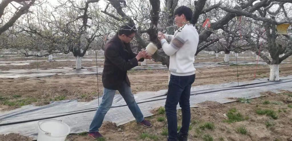 3月是梨花初开季节,为了解气候变化对砀山梨花花期及对砀山梨质量和数量可能产生的影响,17日下午,项目组一行五人驱车前往砀山县园艺场壹号农场采集梨园气候环境数据。项目组成员发扬不怕苦不怕累的精神,逐个检查前期布置的温湿度传感器数据,并做好详细记录,为后期的数据分析做基础。