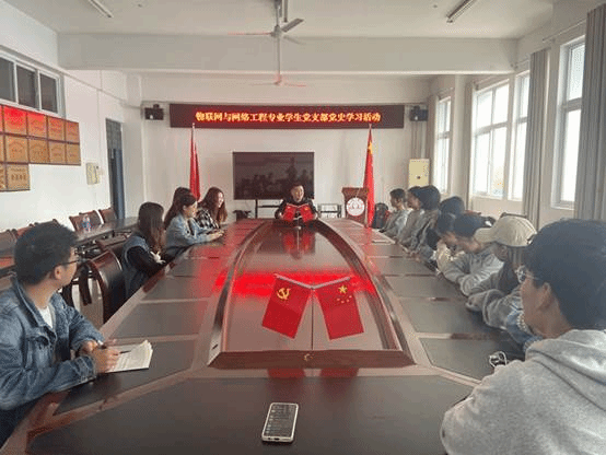 为推动学生党员深入到党史学习教育中, 2021年4月28日,物联网与网络工程专业学生党支部开展了党史学习教育大会,此次会议由党支部书记岳雪峰老师主持。
