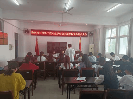 2021年5月18日上午信息工程学院物联网与网络工程专业学生党支部在工B315会议室召开2021年(第二批)预备党员接收大会。本次大会由物联网与网络工程专业党支部书记岳雪峰主持,支部所有正式党员和发展对象参加此次活动。