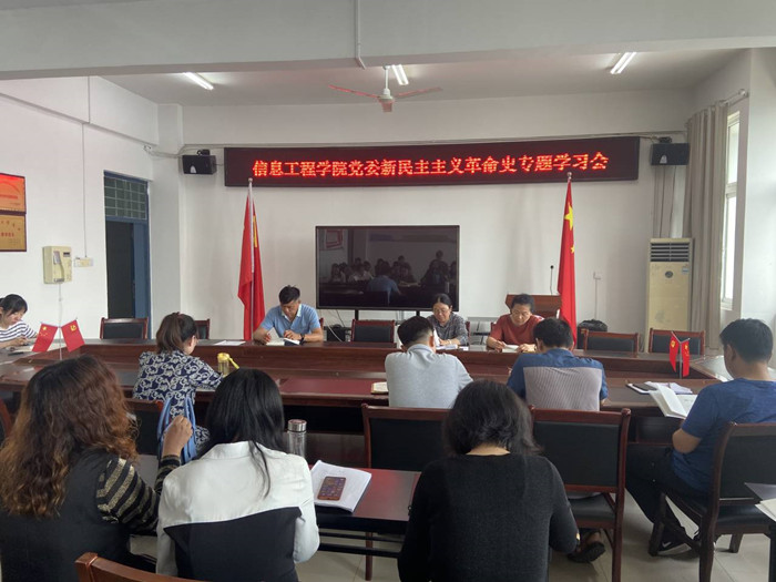 2021年6月2日下午,信息工程学院党委在工科楼B315会议室召开新民主主义革命史专题学习会。此次会议由信息工程学院党委书记路红梅主持,信息工程学院党委委员、各党支部书记、辅导员以及全体教师党员参加了会议。