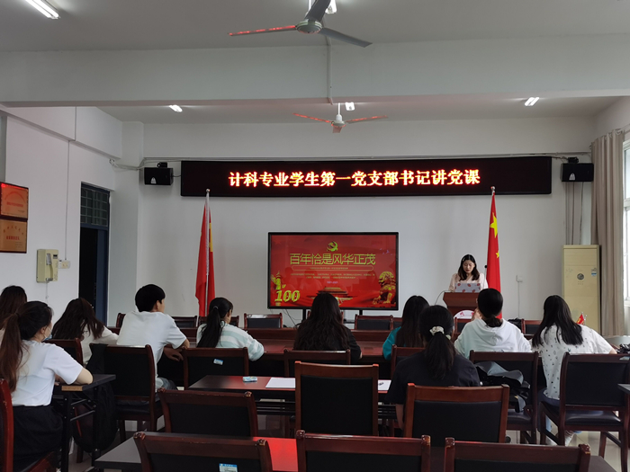 2021年6月18日中午,计算机科学与技术专业第一学生党支部在工B315开展了 “百年恰是风华正茂”专题党史党课,活动由党支部书记吴雨桐主持,全体支部党员参与。