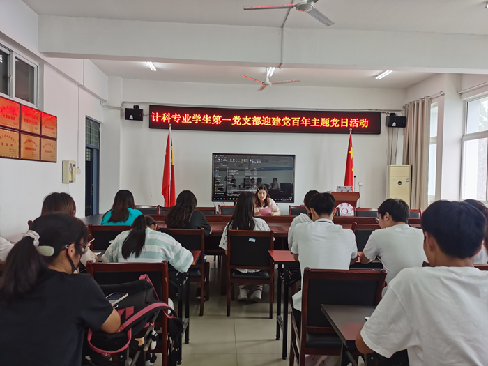 2021年6月21日上午,计算机科学与技术专业第一学生党支部在工B315开展了以“建党百年”为主题的宣讲比赛,活动由党支部书记吴雨桐主持,全体支部党员参与。