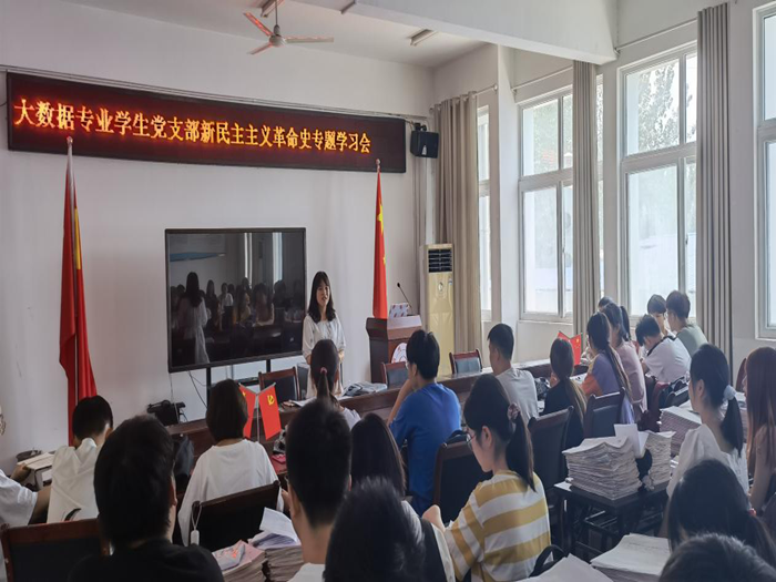 为庆祝中国共产党成立一百周年,深入学习贯彻习近平总书记在党史学习教育动员大会上的重要讲话精神,扎实开展党史学习教育,引导广大党员干部和群众深入学习党史、铭记党史,进一步坚定理想信念。开展专题学习新民主主义革命时期历史,感悟思想伟力,增强“四个意识”、坚定“四个自信”、自觉做到“两个维护”。宿州学院信息工程学院大数据应用专业学生党支部于2021年6月22日在工科楼B315会议室开展新民主主义革命史专题学习会。