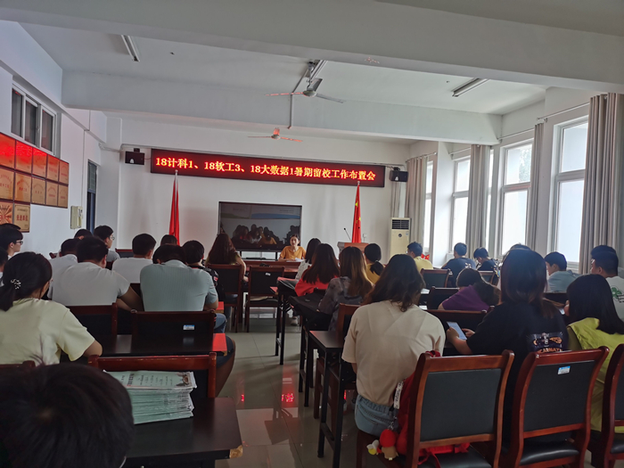 为了更好的布置18级考研同学暑期留校工作,18计科1班、18大数据1班、18软件工程3班,18物联网工程班共52名留校同学于6月28日在工b315召开暑期留校工作布置会,会议由辅导员吴雨桐主持。