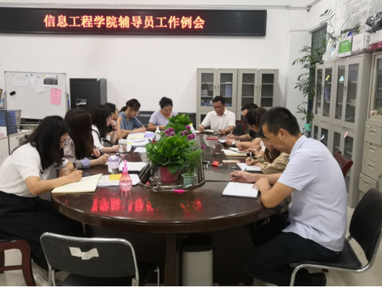 辅导员担负着学生教育和管理的重任,是开展学生工作的骨干力量。在疫情防控常态化背景下,为了帮助辅导员更有效地开展工作,提高他们的工作能力和水平,推动辅导员高质量发展,信息工程学院于2021年9月8日在工B301会议室召开辅导员工作例会,本次会议由信息工程学院党委副书记(临时负责)余晓永主持,信息工程学院党委副书记、纪委书记吴孝银和全体辅导员(班主任)参加了会议。