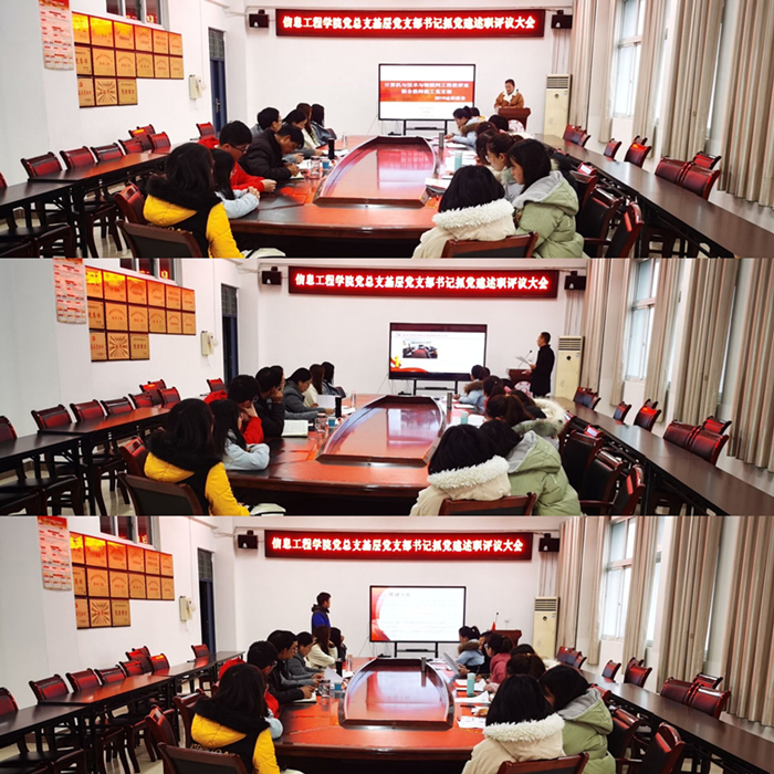 为贯彻落实全国全省组织工作会议精神,贯彻落实省委主题教育领导小组、省委组织部《转发〈关于优化改进基层党建考核工作的通知〉的通知》(皖组发〔2019〕12号)精神及《2019年度党委(党组)书记抓基层党建述职评议考核工作提示》要求,推动基层党建工作深入开展,2020年1月6日上午,信息工程学院于工B315召开2019年度基层党组织书记抓党建述职评议考核工作会议,党总支书记路红梅、党总支委员、各党支部委员、部分党员师生代表参加会议,组织部副部长张劲松莅临信息工程学院现场指导。会议由党总支书记路红梅主持。