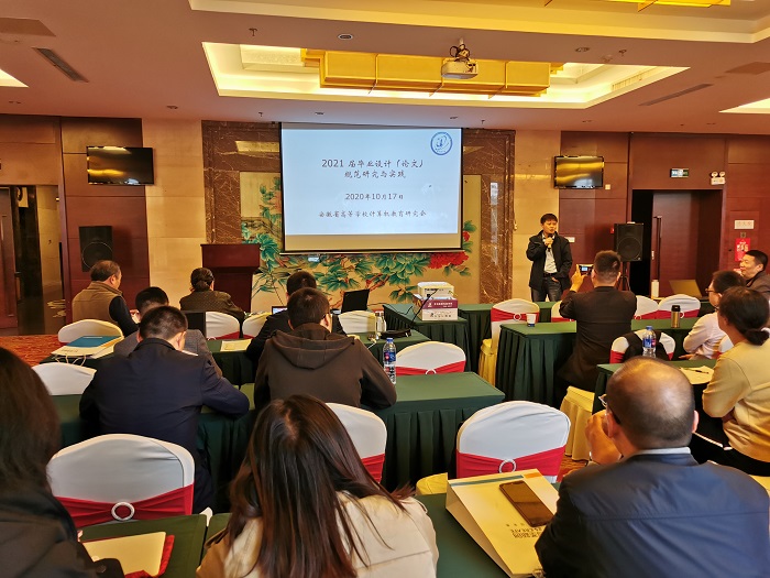 安徽省高等学校计算机教育研究会举办的“2021届毕业设计(论文)规范研究与实践”试点工作启动仪式暨培训会2020年10月16-17日在合肥举行,我院副院长吴孝银、实习实训中心主任潘正高、计算机科学与技术教研室主任谈成访、软件工程教研室主任邱慧丽等四位教师参加。