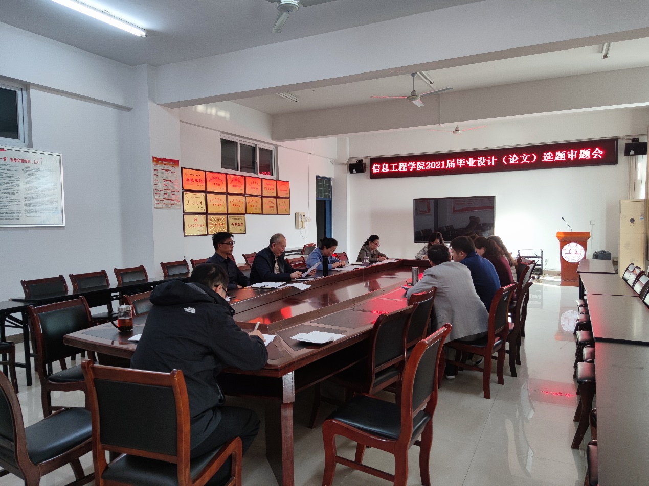 为全面贯彻新时代党的教育方针,按照《宿州学院2021届本科毕业论文(设计)工作实施方案》的要求信息工程学院举行2021届毕业设计选题审题会。审题会由宋启祥院长主持,院领导、各教研室主任、专业负责人等参加。