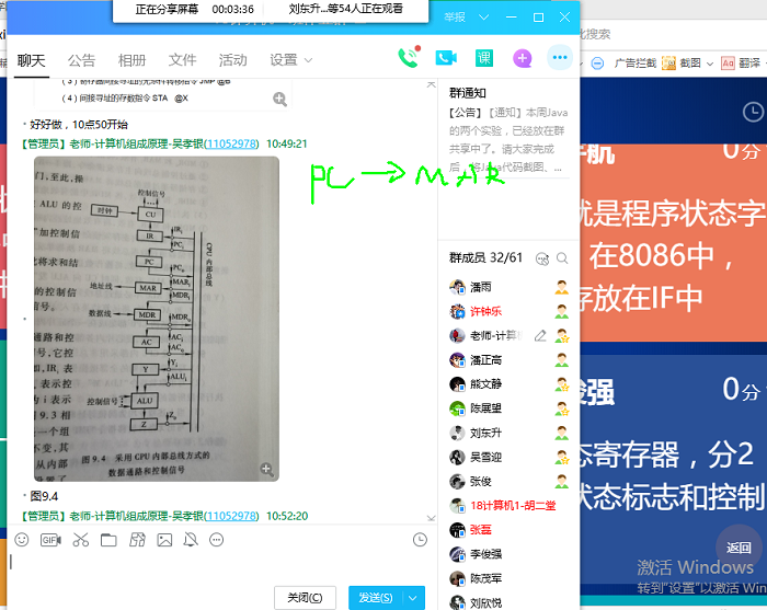 本次教学观摩公开课由信息工程学院吴孝银院长、计科教研室主任谈成访老师以及计科教研室新进教师李松州老师主讲,主讲课程分别为《计算机组成原理》、《数据结构与算法》和《Java程序设计》课程。三位老师在线上教学过程中,重难点明确,教学思路清晰,与学生适度进行互动,整个教学过程幽默风趣,在轻松愉快的氛围中完成知识的传授,教学效果较好。