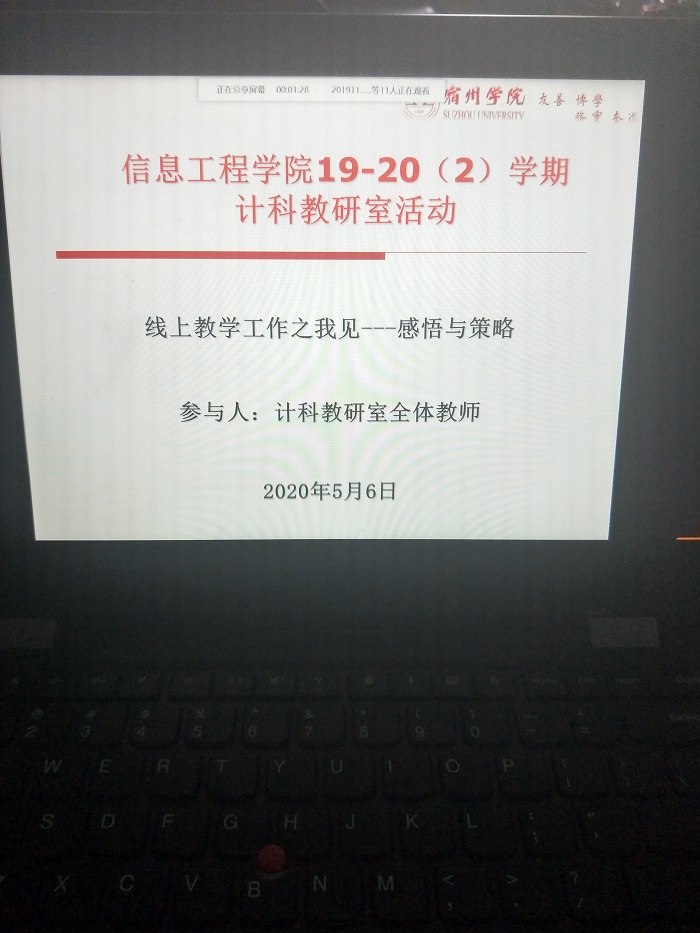 疫情突然来袭,计科教研室紧跟学校和学院的步伐,积极落实“停课不停学”的工作要求,组织教师认真开展线上教学工作,确保教学工作有序地执行。为了能更好地实施线上教学,提高线上教学的质量,计科教研室于5月6日下午开展了“线上教学之我见-感悟与策略”的线上教学研讨活动。信息工程学院吴孝银院长及计科教研室全体教师参与了本次研讨活动。