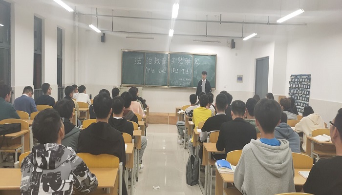 法治教育主题班会,班长秦壮首先给大家普及了大量法律知识,引燃了同学们的热情,接下来通过视频与PPT相结合的方式,重点组织同学学习了《中华人民共和国宪法》、《中华人民共和国高等教育法》、《中华人民共和国刑法》、《中华人民共和国治安管理处罚法》、《宗教事务条例》等相关法律法规。在视频播放完成后,同学们热情高涨,积极讨论积极交流,共同探讨了自己对相关法律案例的看法。