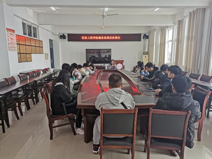 2020年11月28日,信息工程学院在工B315会议室召开了2020届教务助理总队例会,参与本次会议的有信息工程学院徐小雪老师以及领队冯倩,郭子建和负责人刘张龙及相关学生干事。