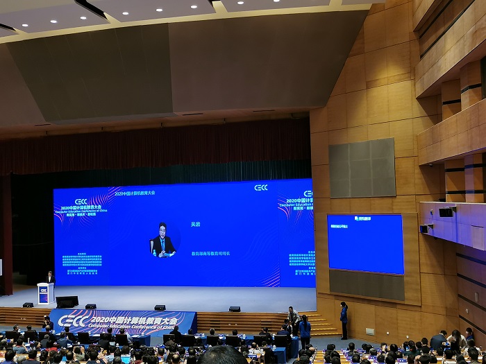 教育部高教司吴岩司长在大会上致辞,对十四五期间,中国高等教育要加快建设高质量高等教育体系,加快教育发展的创新力度,提出三点意见:第一是立足新时代,我们要加快高质量高等教育体系的建设。1是要抓好根本质量;2是要抓好整体质量;3是要抓好服务质量;4是要抓好成熟质量。第二要贯彻新理念,加大高等教育创新发展的力度。1是要加强四新建设(新工科、新农科、新医科、新文科);2是要着力推进“互联网+教育、智能+教育”;3是要推进创新创业教育融合发展。第三是进入新时代,我们要把高等学校计算机教育展现新的作为。1是发挥好基础支撑作用;2是发挥好高端引领作用;3是发挥好专业综合优势;4是发挥好产教融合作用;5是要建强教师队伍。