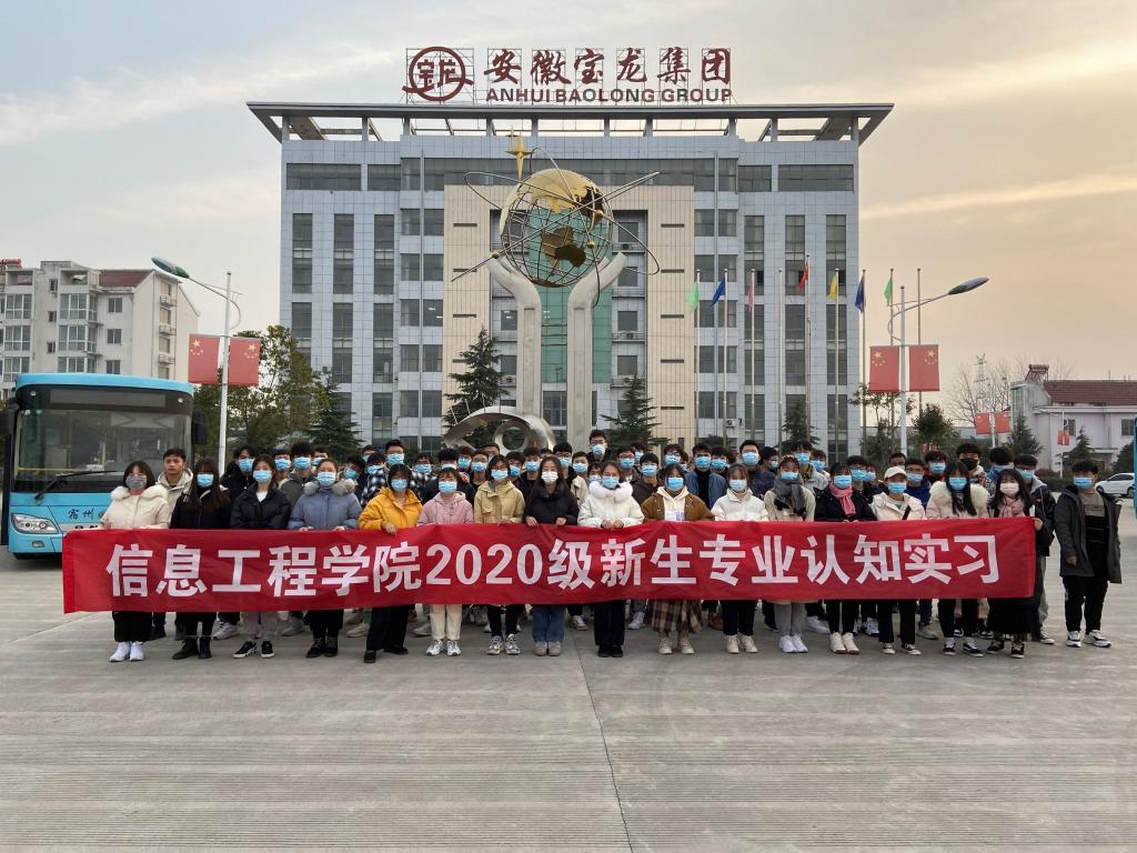为进一步提高学生专业素养,推进校企合作,提高实习实训质效和学生素养,2020年12月23日,信息工程学院副院长吴孝银、教学秘书徐旭老师,党务秘书张万礼老师,团总支书记梁楠楠老师和20级辅导员岳雪峰老师等教师带20级所有新生赴安徽宝龙科技有限公司开展专业认知实习。