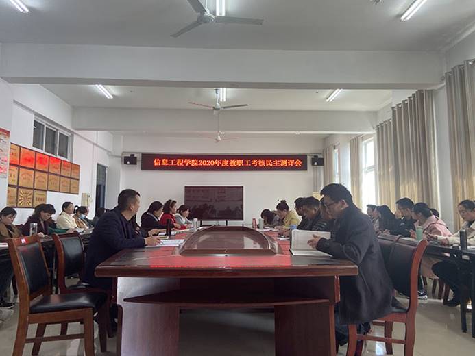 为正确评价我院教职工年度德才表现和工作实绩,激励和督促教职工提高政治、业务素质,认真履行职责,根据《事业单位工作人员考核暂行规定》和《宿州学院教职工年度考核办法》等有关文件精神,信息工程学院于3月24日下午在工B315召开2020年度考核工作,考核内容为德、能、勤、绩、廉五个方面,重点考核工作绩效。
