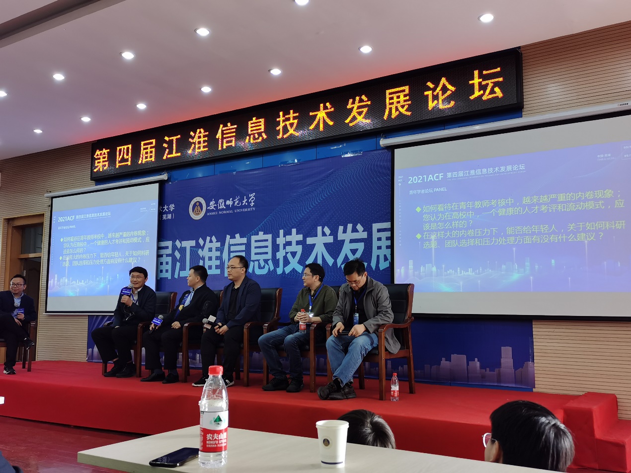 论坛紧紧围绕行业动态和技术前沿,安排了多个高端学术研讨。期间,安徽省属高校计算机学科发展座谈会于5月5日下午召开,省属高校汇报交流了各自学院计算机学科建设情况及遇到的发展瓶颈等问题。优秀青年学者论坛于另一会场同期举行,清华大学朱军教授、东南大学虞文武教授、华南理工大学张通教授、浙江大学许威威教授、同济大学何良华教授先后作了学术报告,并分享了自己在科研上一路走来的心得体会和中肯建议。