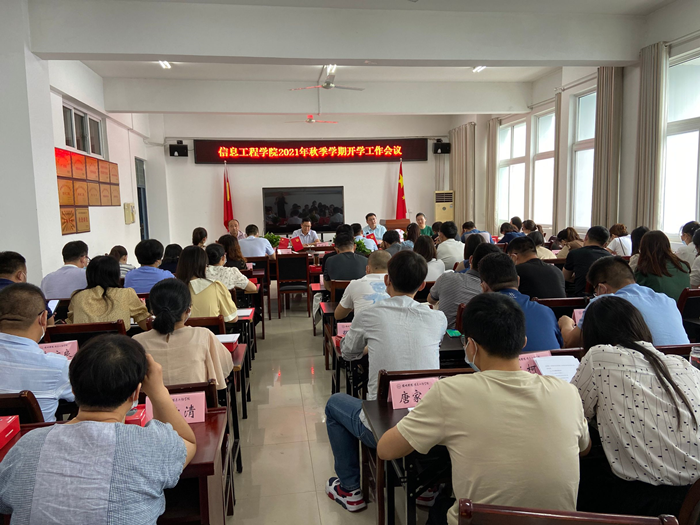8月27日上午,信息工程学院在工B315会议室召开全体教职工会议,部署2021-2022第一学期开学工作,会议由信息工程学院党委副书记、院长许海峰主持,学院党委副书记余晓永,党委副书记、纪委书记吴孝银,组织员黄永刚及信息工程学院全体教职工参加会议。