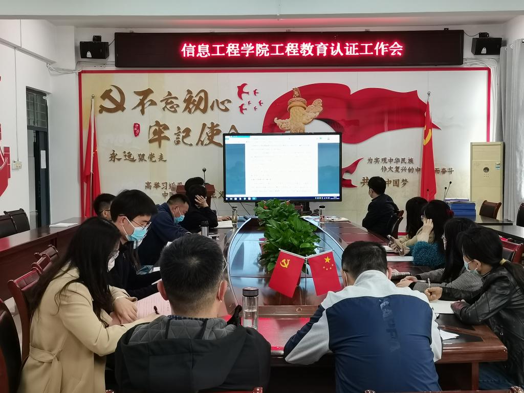 为进一步落实工程教育认证理念,更加扎实地推进信息工程学院工程教育认证工作。4月13日下午,信息工程学院在工B315会议室召开工程教育认证工作会。信息工程学院工程教育专业认证工作组全体成员、各专业负责人和部分骨干教师参加本次会议。会议由信息工程学院教学副院长潘正高主持。