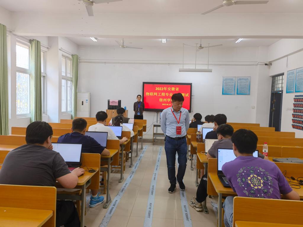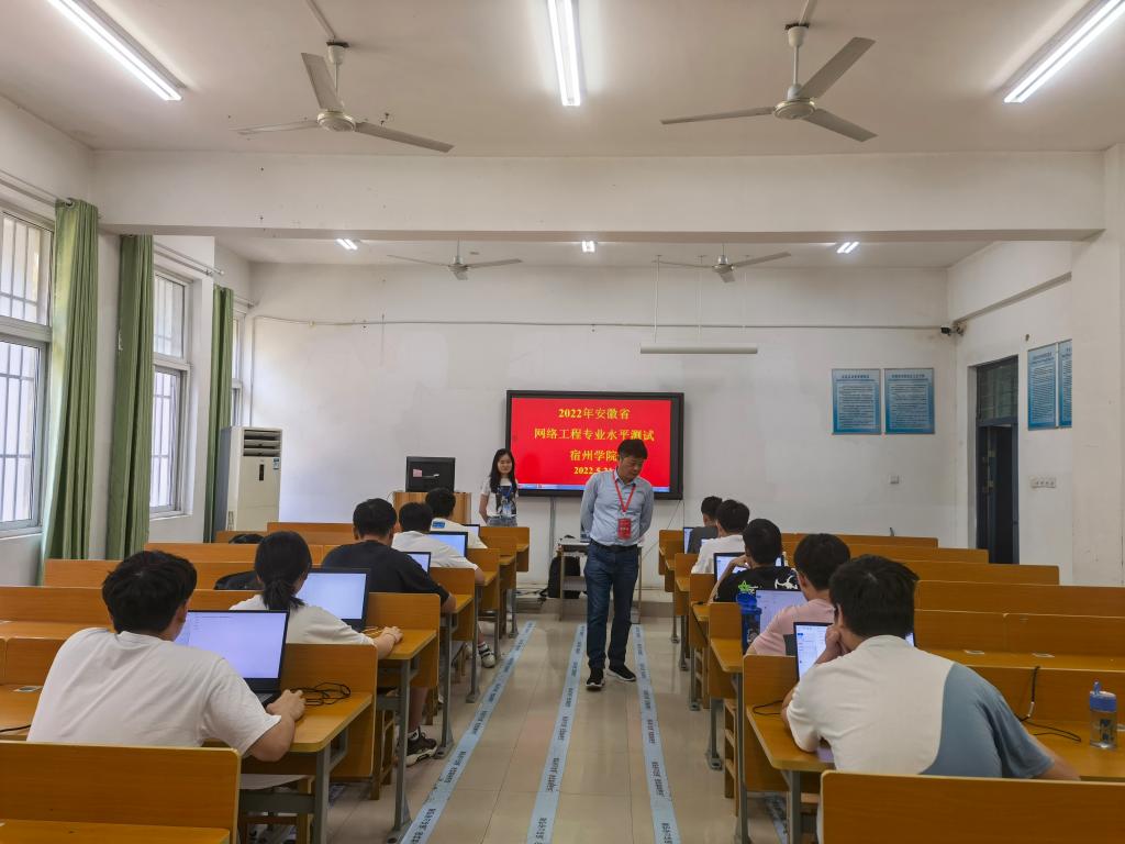 根据安徽省教育厅《2022年安徽省网络工程类专业水平测试赛实施方案》和《2022年安徽省物联网类专业水平测试赛实施方案》,2022年5月21日,信息工程学院在工科楼B206和工科楼B208开展了2022年安徽省网络工程、物联网专业水平测试,学院网络工程和物联网两个专业各有10名学生被随机抽取参加此次测试赛。信息工程学院教学副院长潘正高,网络工程教研室主任姜飞以及相关教师参加此次工作。