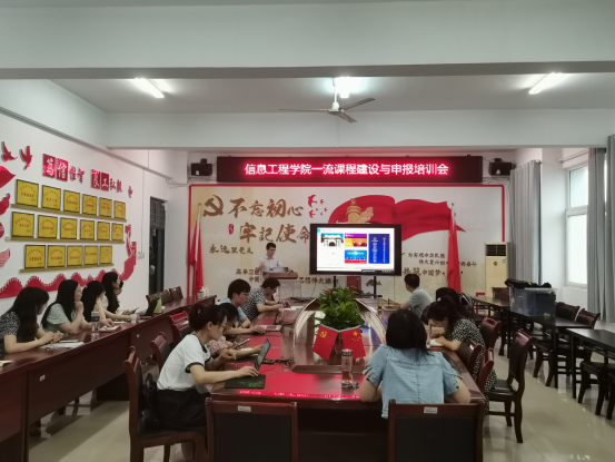 为推进一流课程建设与申报,推动我院教师信息技术与教育教学深度融合,推进课程改革创新,树立课程建设新理念,提高教师教学能力,学院邀请清华大学学堂在线高级项目经理周曙6月23日上午10:00信息工程学院3楼会议室举办国家一流课程建设与申报培训会。学院要求教学管理人员、已立项的省级以上课程类项目负责人和拟申报国家级、省级一流课程负责人参会,其他感兴趣老师线上参加会议,副院长潘正高主持会议。 周经理从一流课程推荐认定办法、一流课程培育方案、一流课程申报建议三个方面进行精彩讲解,详细阐述线上、线下、线上线下混合式国家级一流课程建设的理念、思路、方法、申报要点、考评以及建设成效,并从评审专家角度,详细阐述了一流课程申报要点设计及注意事项,并用多个案例解读了申报书中存在的常见问题,并现场进行数字化教学工具的实操培训。