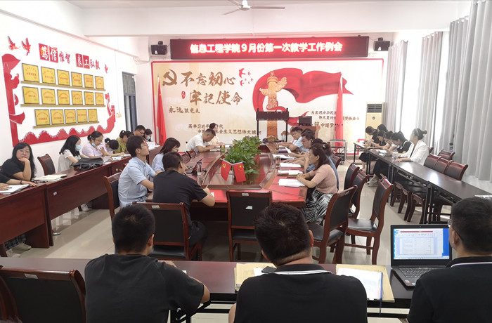 9月7日下午,信息工程学院在工B315会议室召开九月份第一次教学工作例会,信息工程学院党委副书记余晓永(临时负责),党委副书记、院长许海峰,党委副书记、纪委书记吴孝银,科研副院长崔琳,教学副院长潘正高,组织员黄永刚及全体教职工参加会议。会议由许海峰主持。