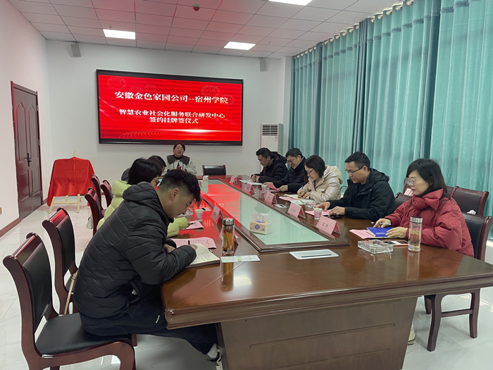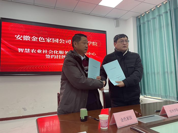 余晓永一行前往位于宿州市高新区的安徽金色家园农业社会化服务有限公司,受到了企业代表的热情接待。金色家园总经理孙韩介绍了安徽金色家园农业社会化服务有限公司的发展历程、企业文化、发展战略等方面的情况。她表示,企业正处于转型升级的关键时期,只有强有力的人才支撑才能实现企业的蜕变,希望与信息工程学院就人才培养、实习实训、资源共享等方面建立长期的合作关系。许海峰从办学规模、人才培养、学生就业、校企合作等方面介绍了我院的基本情况以及服务地方经济情况。会后现场签订了校企合作协议书,完成了就业基地授牌仪式。