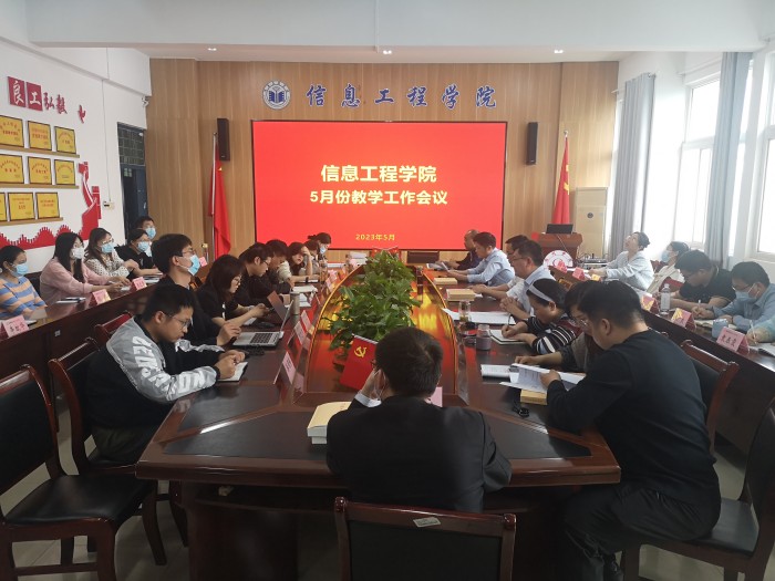 5月24日下午,信息工程学院在工B315会议室召开五月教学工作例会,信息工程学院党委书记余晓永,党委副书记、院长许海峰,组织员黄永刚,党委副书记、纪委书记吴孝银,科研副院长崔琳,教学副院长潘正高及全体教职工参加会议。会议由许海峰主持。