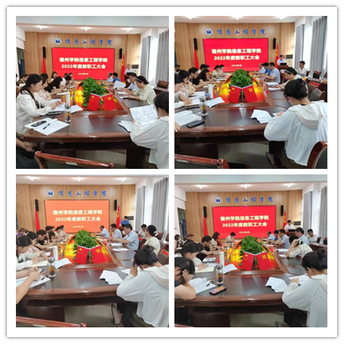 2023年6月21日下午,信息工程学院在工B315会议室召开2022年度教职工大会,信息工程学院党委书记余晓永,党委副书记、院长许海峰,组织员黄永刚,党委副书记、纪委书记吴孝银,科研副院长崔琳,教学副院长潘正高,学院分工会主席刘皖苏及全体教职工参加会议。
