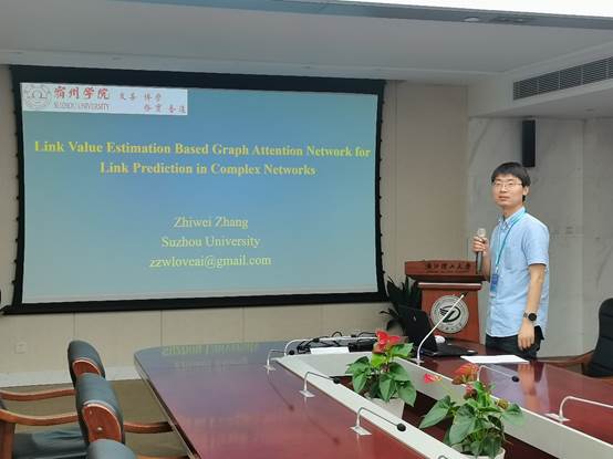 会议期间,张志伟分享了题为“Link Value Estimation Based Graph Attention Network for Link Prediction in Complex Networks”主题报告,针对现有GNN在应用网络结构及其特征以“邻域聚合”的方式学习节点表征时,往往只考虑节点是否连接或通过节点特征计算出连边的权重,忽略了链路的固有价值。论文基于网络结构分析链路价值并提出相应的评估指标,并将链路价值融入到链路预测图注意力网络的构建和训练之中,不仅提升了链路预测模型的性能,而且为预测结果的可解释性提供理论支撑。