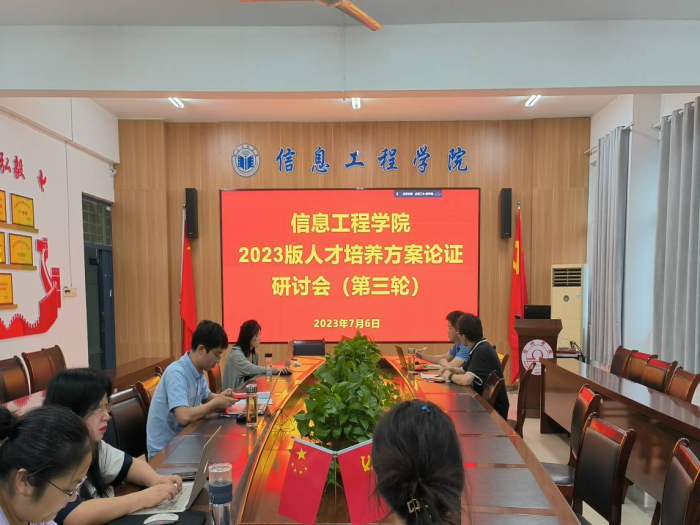 为进一步推进2023版人才培养方案的制(修)定工作,提高方案论证的科学性,2023年7月6日,信息工程学院在工B315召开2023版人才培养方案论证研讨会(第三轮),会议采用线上和线下相结合的方式,邀请到合肥工业大学胡学钢教授、安徽工程大学王勇教授、河北地质大学赵占芳教授3位工程教育认证专家参加论证研讨会。信息工程学院工程教育认证工作组成员、教研室主任、副主任参加了此次研讨会,研讨会由信息工程学院副院长潘正高主持。