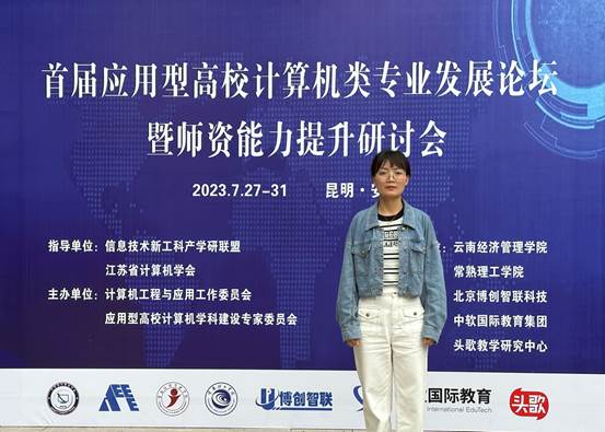 2023年7月27—31日,首届应用型高校计算机类专业发展论坛暨师资能力提升研讨会在云南昆明安宁市成功举办。本次会议由信息技术新工科产学研联盟计算机工程与应用工作委员会和江苏省计算机学会应用型高校计算机学科建设专家委员会主办,云南经济管理学院和常熟理工学院承办,北京博创智联科技、中软国际教育集团和头歌教学研究中心协办。来自国内70余家单位140余位代表参加了本次会议。信息工程学院邱慧丽老师参加了此次会议。
