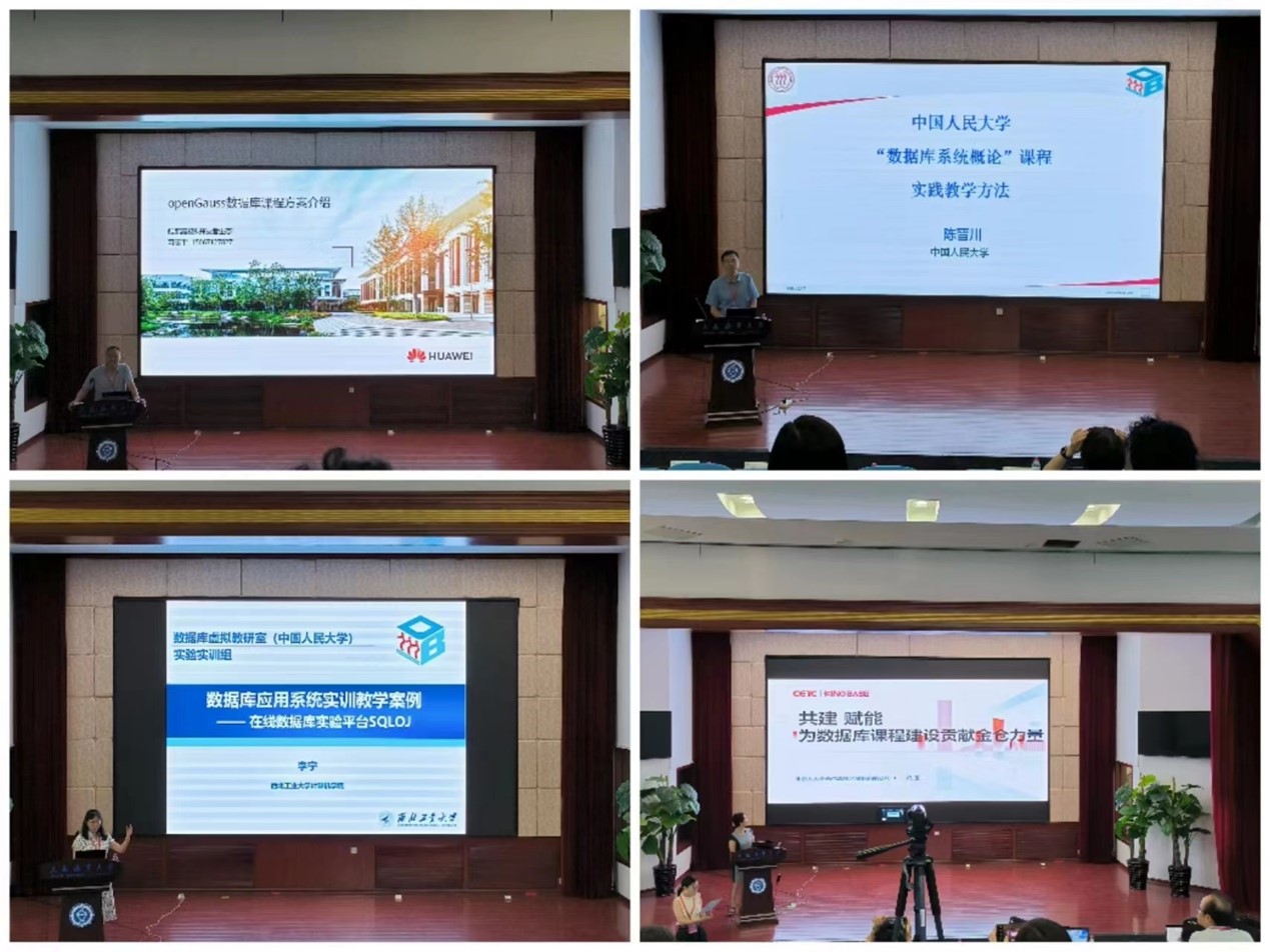 会上,华为鲲鹏高校&开发者生态团队经理、华为高斯数据库讲师习志平作了题为《openGauss数据库课程方案介绍》的主题报告,中国人民大学信息学院计算机系副教授陈晋川作了题为《“数据库系统概论”课程实践教学方法》的主题报告,西北工业大学计算机学院计算机软件与科学系副教授李宁作了题为《数据库应用系统实训教学案例——在线数据库实验平台SQLOJ》的主题报告,CMOOC 联盟实践教学工委副秘书长,头歌教学研究中心副主任周丽涛作了题为《头歌教学平台——数据库实践教学课程建设》的主题报告,北京人大金仓信息技术股份有限公司首席专家,中国人民大学工程硕士研究生企业导师冯玉作了题为《共建赋能——为数据库课程建设贡献金仓力量》的主题报告,大连海事大学人工智能学院副院长张俊作了题为《大连海事大学使用国产数据库实践教学方法》的主题报告。会后,老师们在认真聆听、学习专家报告的同时,还就数据库原理课程设置、国产数据库实践教学的开展等方面进行了充分的探讨与交流,大家纷纷表示收获颇丰。