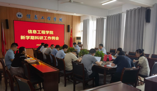 信息工程学院为了对新学期的日常科研工作进行布置,于2023年9月5日13:00,在工B315会议室,召开了新学期科研工作第一次例会。参会人员包括党委副书记、院长许海峰、科研副院长崔琳、教学副院长潘正高、科研秘书、各研究中心负责人、各创新中心负责人、教研室正主任、学术委员会成员、科研员。会议由崔琳主持,并做了新学期科研工作的部署。
