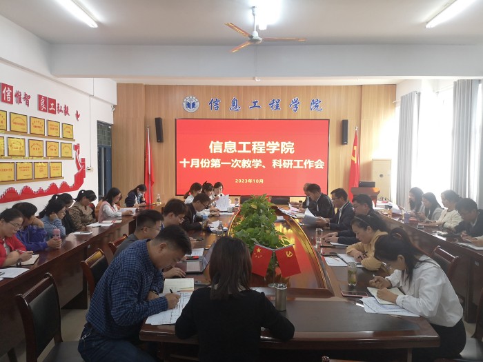 10月11日下午,信息工程学院在工B315会议室召开十月份第一次教学工作例会,信息工程学院党委书记余晓永,党委副书记、院长许海峰,组织员黄永刚,党委副书记、纪委书记吴孝银,科研副院长崔琳,教学副院长潘正高及全体教职工参加会议。会议由许海峰主持。