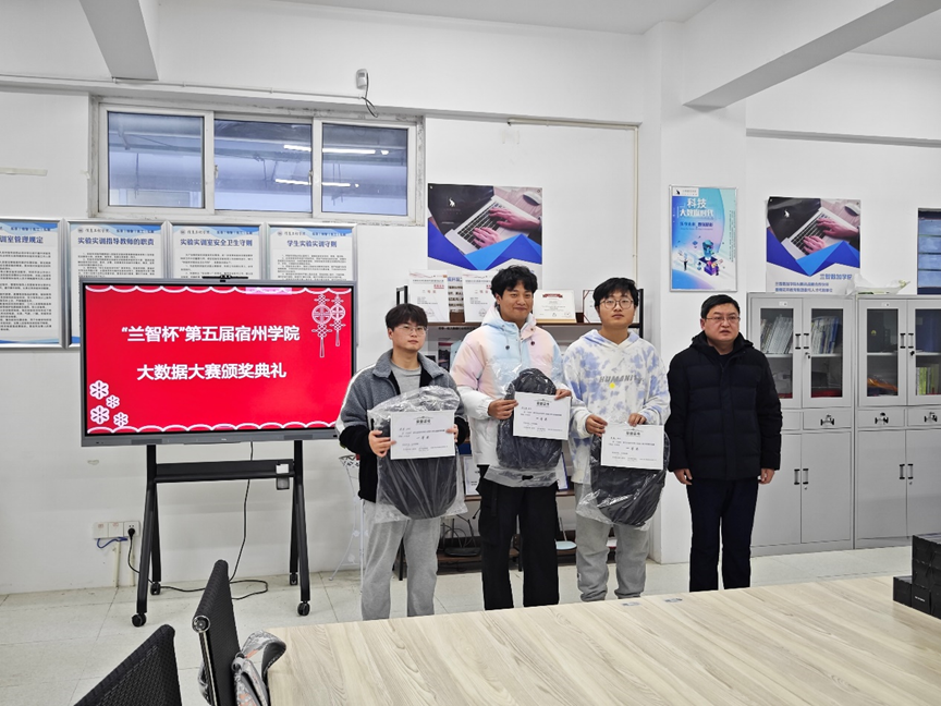 为在宿州学院普及大数据应用技术基本理论与知识,增强我校各专业学生把大数据应用技术与所学专业相结合的意识,提升各专业学生的大数据+创新创业能力,由宿州学院教务处主办,信息工程学院和安徽兰智大数据科技有限公司联合成功承办了“兰智杯”第五届宿州学院大数据大赛。此次大赛,共评选出一等奖16人、二等奖27人、三等奖31人。12月14日下午,在工科楼工B106成功举行了“兰智杯”第五届宿州学院大数据大赛颁奖典礼。参加此次颁奖典礼的有信息工程学院院长许海峰、科研副院长崔琳,安徽兰智数加学院总经理杨晓伟、校企事业部总经理徐强、企业就业处总经理杨旭,以及获奖同学。
