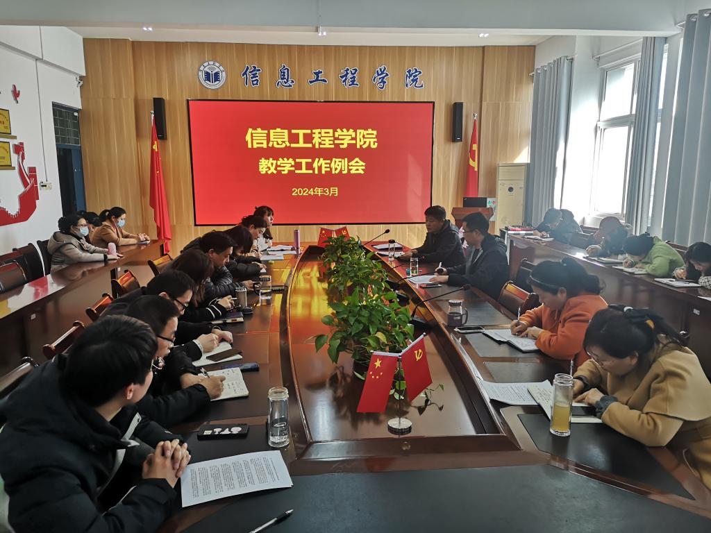 3月30日下午,信息工程学院在工B315会议室召开三月份教学工作例会,信息工程学院党委书记余晓永,组织员黄永刚,党委副书记、纪委书记吴孝银,科研副院长崔琳,教学副院长潘正高及全体教职工参加会议。会议由潘正高主持。